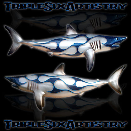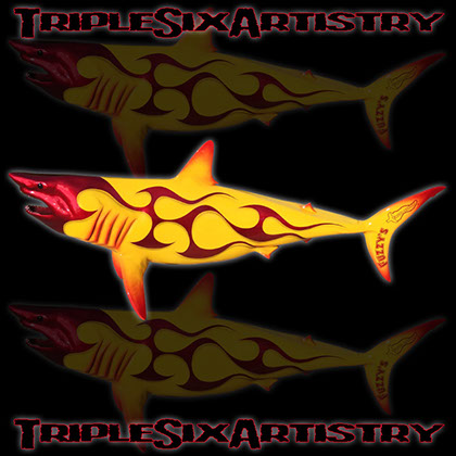 Suspension mounts are perfect for hanging from a ceiling...over a bar, pool table, entry way, etc. These fiberglass replicas are dimensional on both sides and are painted a full 360 degrees, They are fully painted from any viewing angle. (In most situations there is a small hole in the tip of the dorsal fin and the tip of the tail fin to pass a thin cord or wire through for hanging purposes. In some cases there may be metal eyelets as opposed to holes depending upon the balance point of that specific mount)